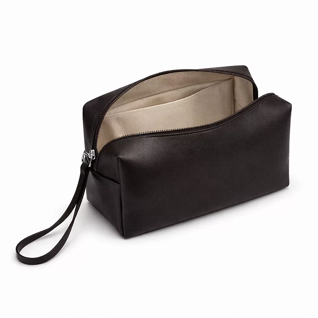 Por su tamaño práctico, este neceser cabe cómodamente en mochilas, maletas o equipaje de mano sin ocupar demasiado espacio. Es perfecto para llevar artículos de aseo, perfumes pequeños, cremas, cables, cargadores o accesorios esenciales. También es una excelente opción de regalo por su estilo sobrio y atemporal.